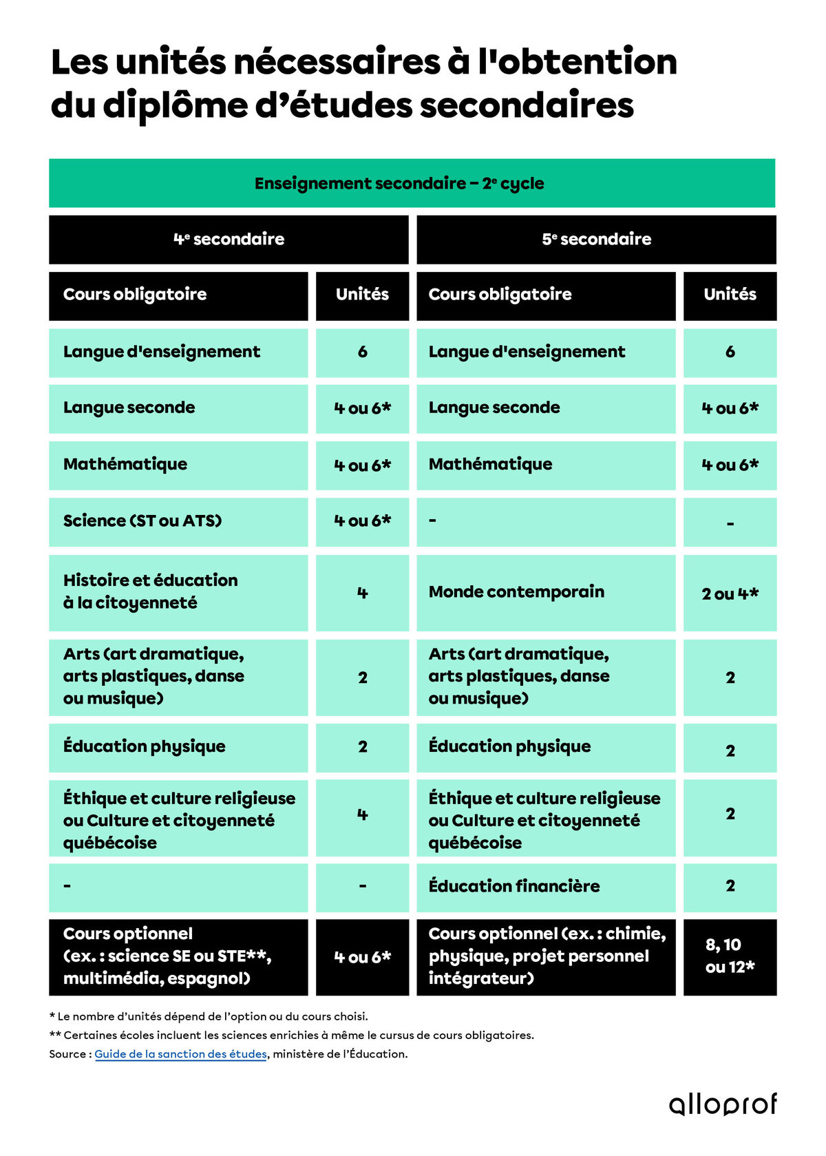 Ta mission : obtenir 54 unités en tout lors de ta 4e et de ta 5e secondaire. Il y en a 20 parmi ceux-ci qui doivent obligatoirement être obtenus en 5e secondaire.
