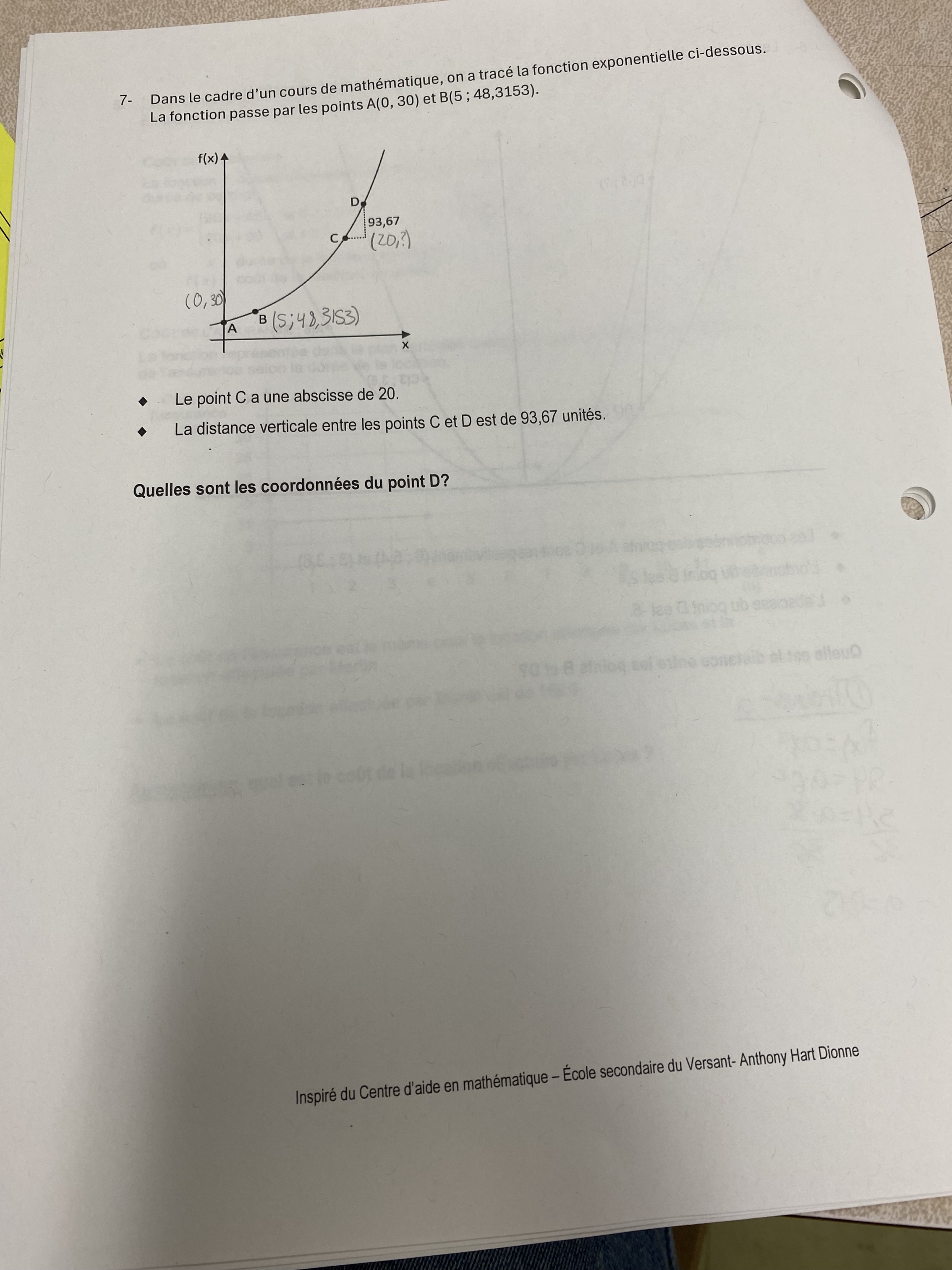 Secondary IV • 5dQuelqu’un peut m’aider à comprendre comment trouver l’ordonnée du C svppppp