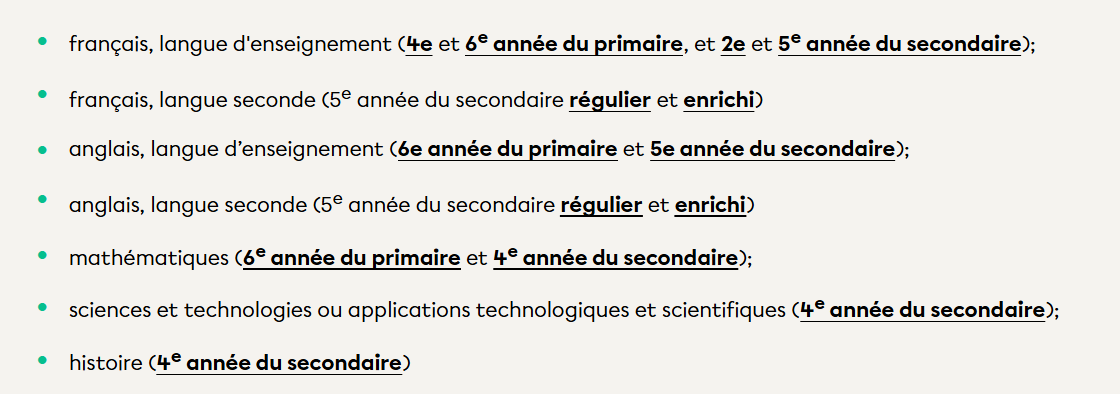Voici tous les examens du ministère: