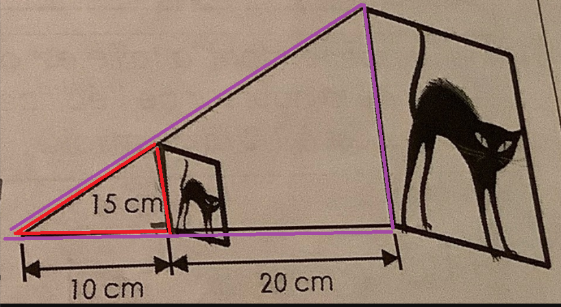 En ce qui concerne ton problème, pour le résoudre, tu dois comprendre les rapports de similitudes. Dans ton problème, nous cherchons combien de fois l'image du chat est plus grande que l'original. De ce fait, nous cherchons le rapport k entre ces deux images.