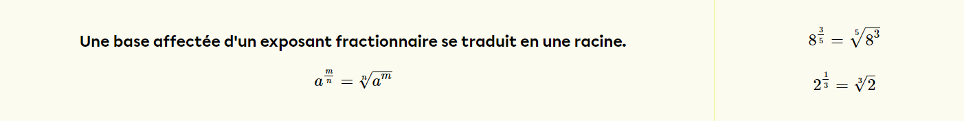 Donc, pour ton problème, commence par transformer ta racine en exposant puis utilise les propriétés des exposants pour simplifier ton expression.