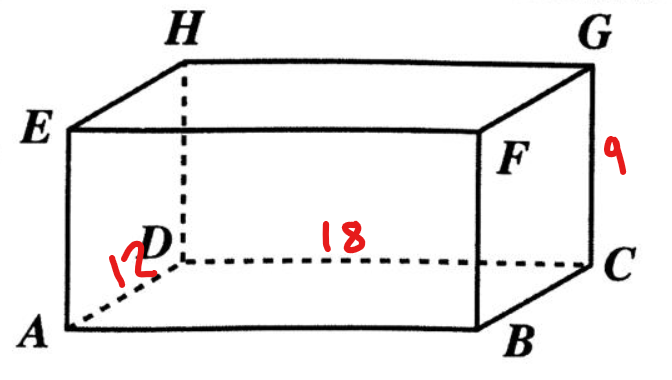 Tout d'abord, tu dois comprendre que les pièces sont des prismes à base rectangulaire. On te dit que la chambre mesure 12 par 18 pieds, et que le plafond est à 9 pieds de hauteur.