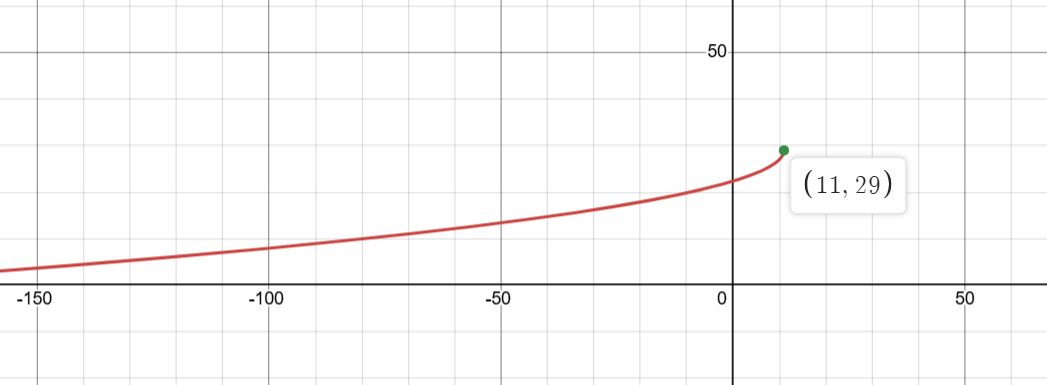 Tout d'abord, traçons le graphique de la fonction \(f(x)=-2\sqrt{11-x}+29\) :