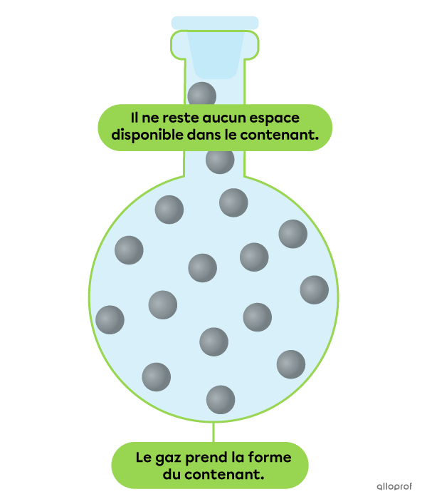 Les gaz n'ont pas de volume fixe parce que les particules d’une substance à l’état gazeux sont très peu liées entre elles. Cela fait en sorte qu’elles sont éloignées les unes des autres et qu’elles ne sont pas ordonnées.