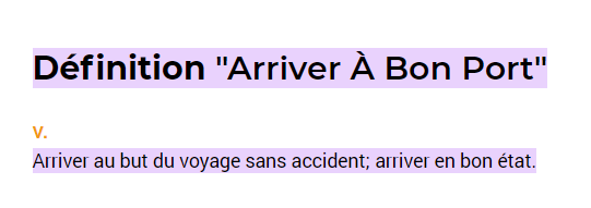 Ce que tu as écrit est très bien, j'ajusterais seulement la définition de l'expression revenir à bon port, qui signifie que l'on réussit à surmonter des difficultés ou des obstacles et à atteindre un objectif ou une situation stable.
