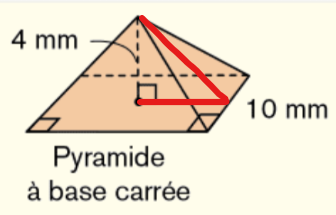 Tu auras donc d'abord besoin de trouver l'apothème de la pyramide. Pour cela, tu peux utiliser le théorème de Pythagore :