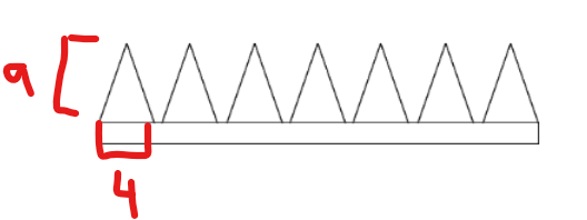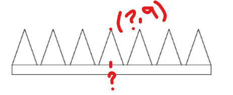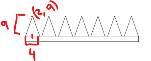 Tu peux trouver la valeur du paramètre h, la coordonnée en x du sommet, en utilisant le fait que la largeur des dents est de 4 mm et qu'elles sont espacées de 1 mm.