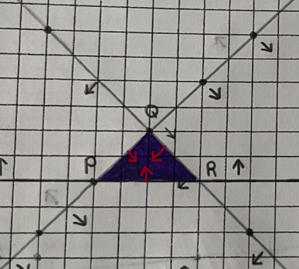 Comme tu peux le voir sur la prochaine image, si ton polygone est à gauche ou à droite au moins une flèche ne le pointe pas !