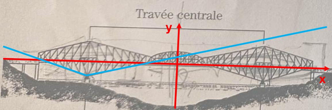 Le but est de trouver les équations de fonctions qui peuvent représenter la forme du pont. Ici, il est question de fonctions valeurs absolues. Ces dernières ont une forme de V. Tu peux donc représenter les formes en V du pont.