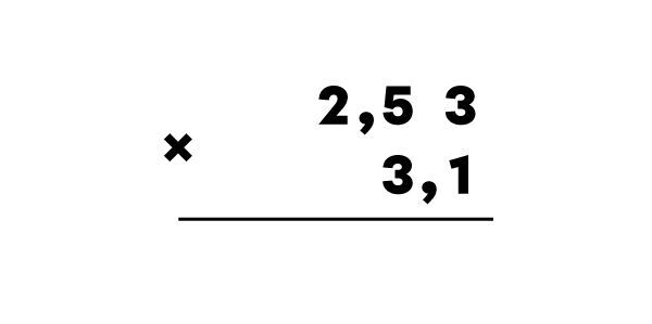 Par exemple, il y a ici trois chiffres après la virgule dans les nombres multipliés (5 et 3 dans 2,53, et 1 dans 3,1) :