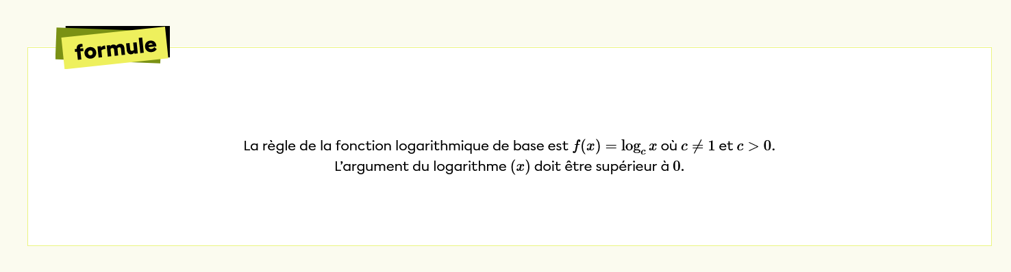 La fonction logarithmique est la réciproque de la fonction exponentielle. C’est une fonction qui comporte une asymptote verticale et dont le domaine est restreint.