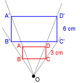Tu peux voir aussi que la mesure du rectangle bleu est deux fois plus grand que celle du rectangle rouge, te donnant ainsi un rapport k de 2.