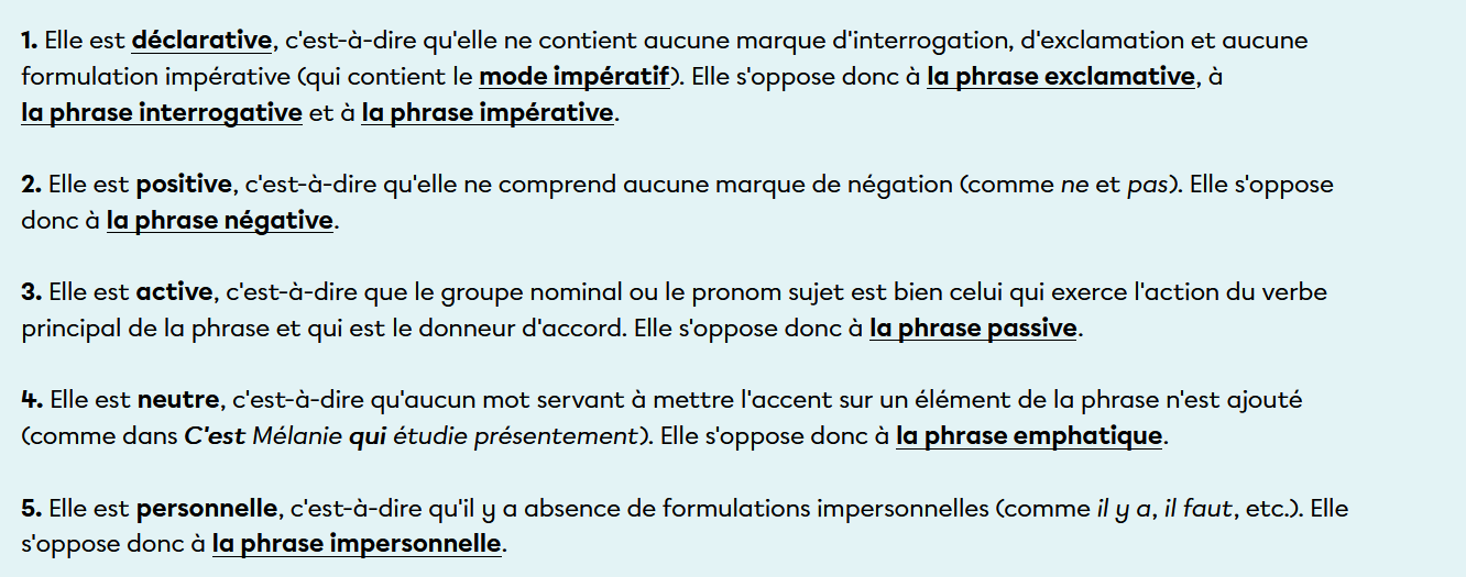 La phrase de base possède cinq caractéristiques.