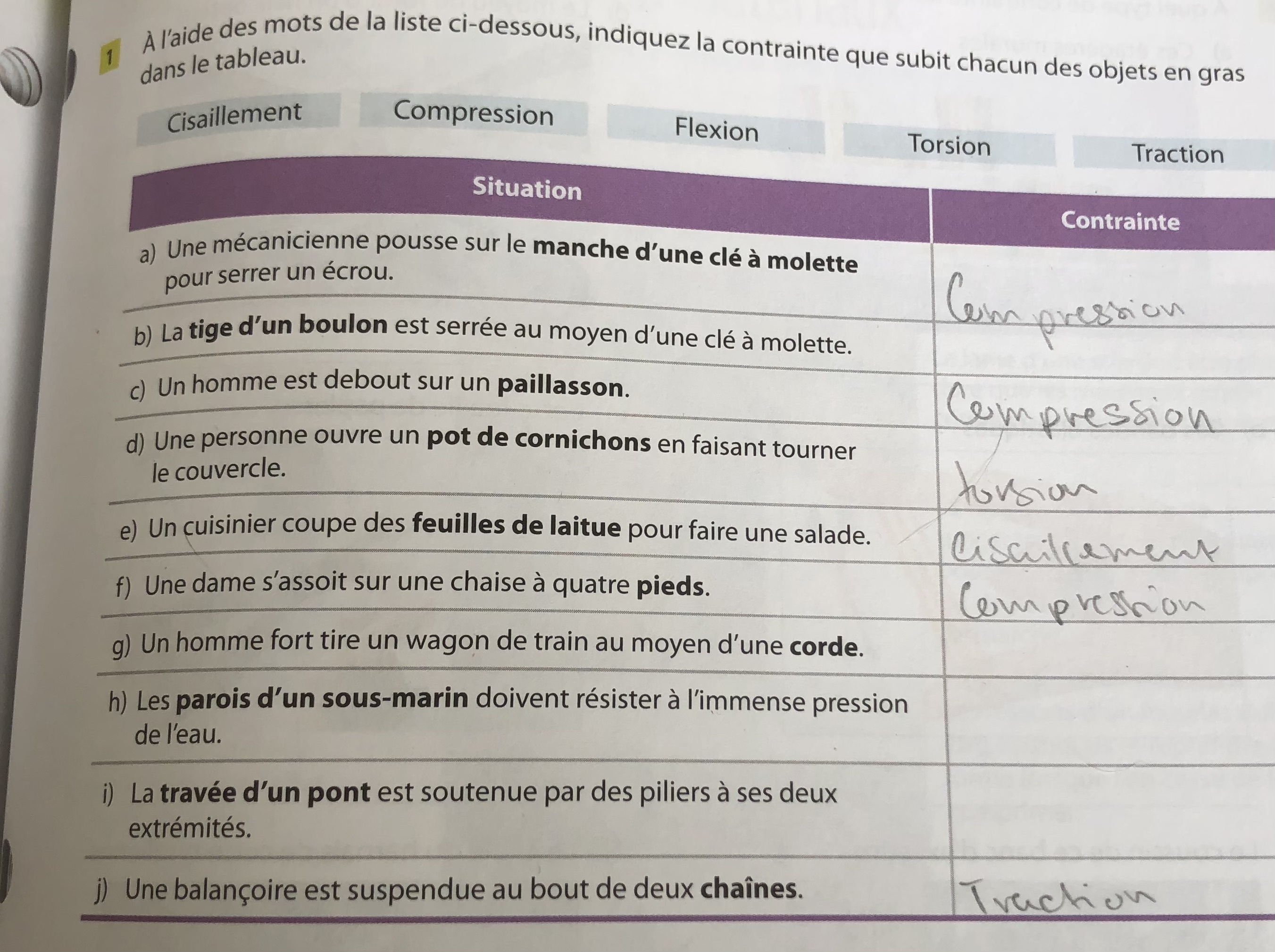 Bonjour Allôprof pouvez-vous me donner un autre exemple pour la contrainte de flexion et m’aider pour les autres lettres merci d’avance bonne journée