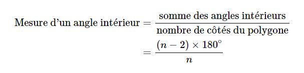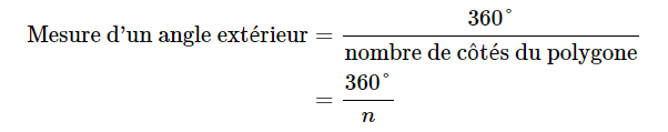 Pour trouver la mesure d'un angle intérieur et extérieur, tu as les formules suivantes :