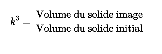 Tu connais ainsi k^3 et le volume du solide initial. Tu peux isoler le volume du solide image pour en trouver la valeur: