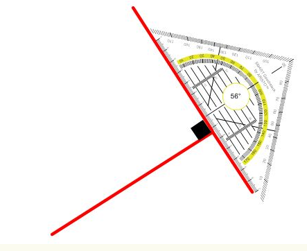 Quand c'est perpendiculaire, c'est quand deux lignes se rejoignent à 90°. Ici, les deux lignes rouges sont perpendiculaires: