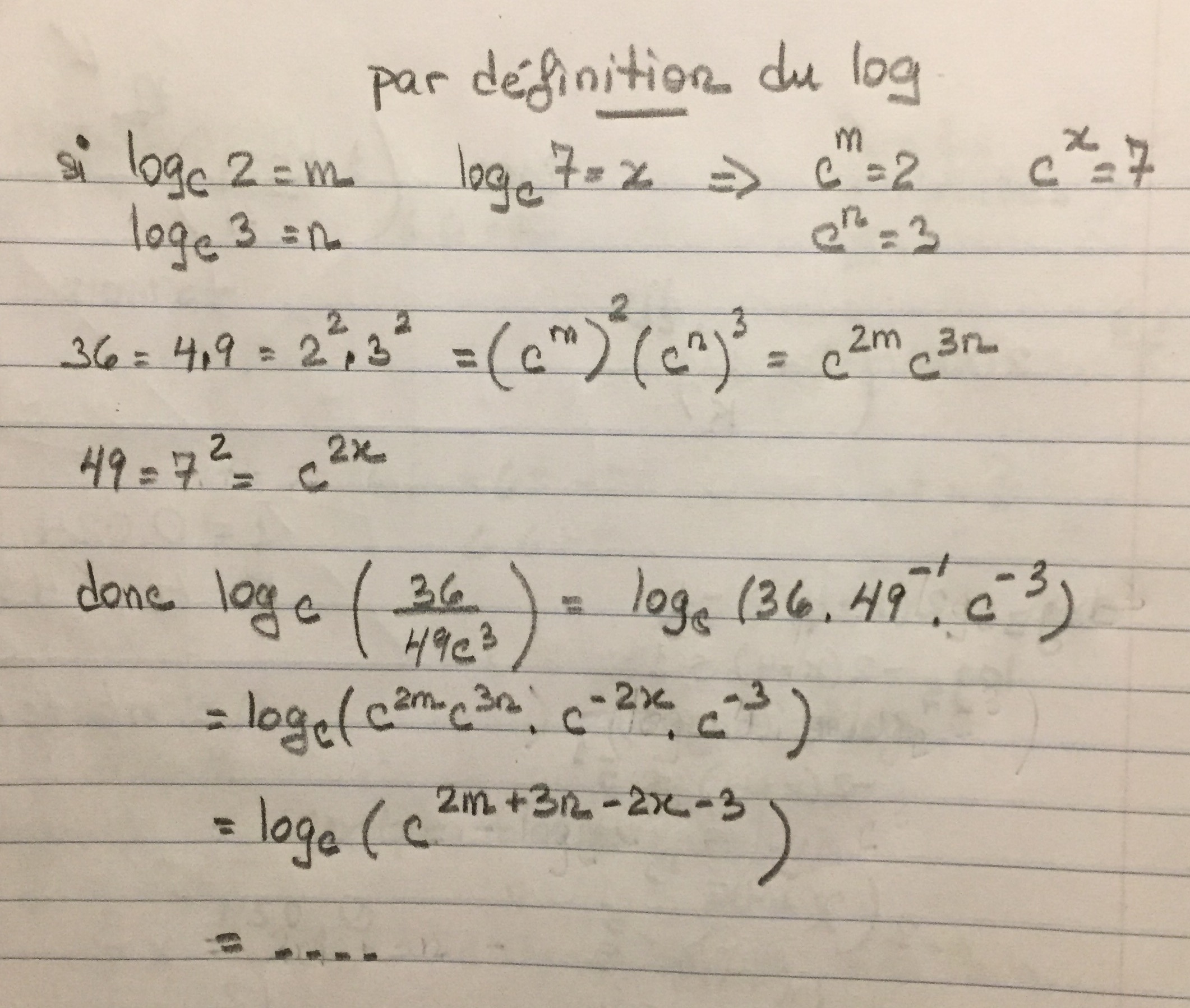 Note: on peut procéder de différentes façons en autant qu'on respecte les lois des logarithmes