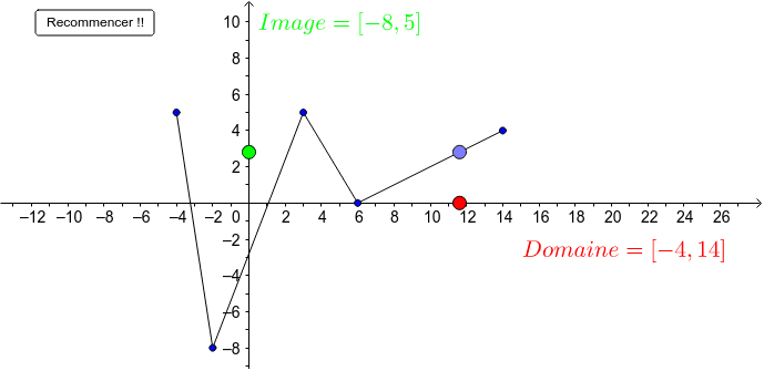 La plus petite valeur possible de x est le premier nombre à mettre dans l'intervalle du domaine, et la plus grande valeur possible de x est le second nombre. Voici un exemple :