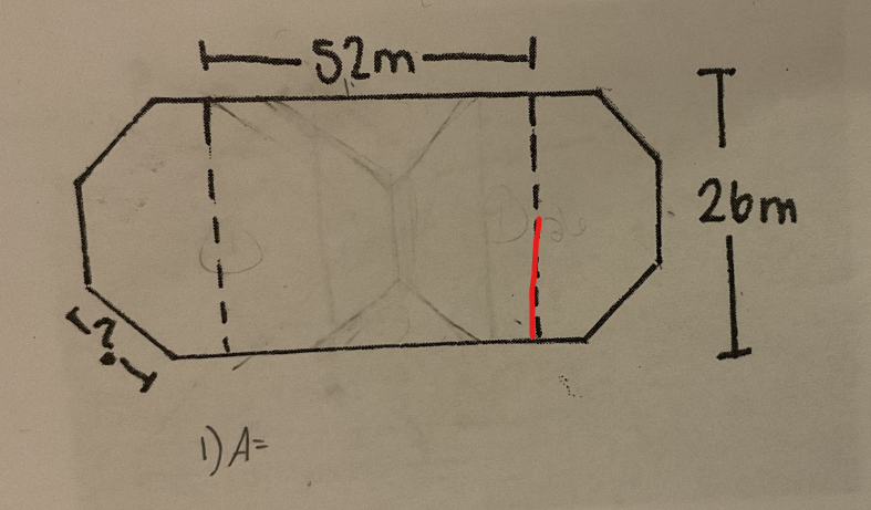 $$ 2433,6 = (52 \times 26 )+ Aire~ octogone$$