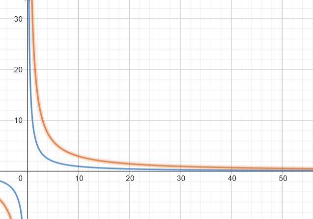 Comme tu peux le voir dans le graphique, les droites ne se croiseront jamais en théorie.