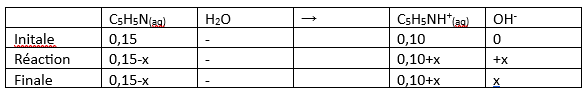 L'ajout de \(C_5H_5NHCl\) implique que tu auras en effet une quantité initiale de cations lors de la réaction. Et comme il s'agit d'un équilibre, tu ne connais pas la quantité qui a réagi.