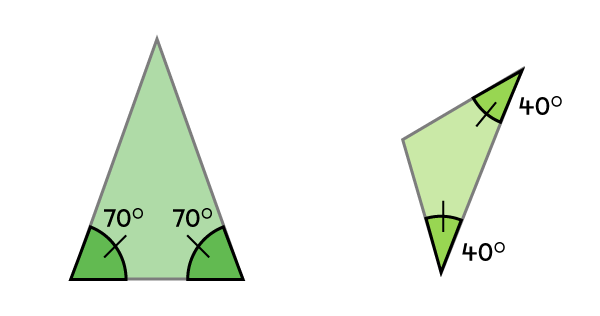 Un triangle isocèle possède deux côtés de même mesure. Voici des exemples de triangles isocèles :
