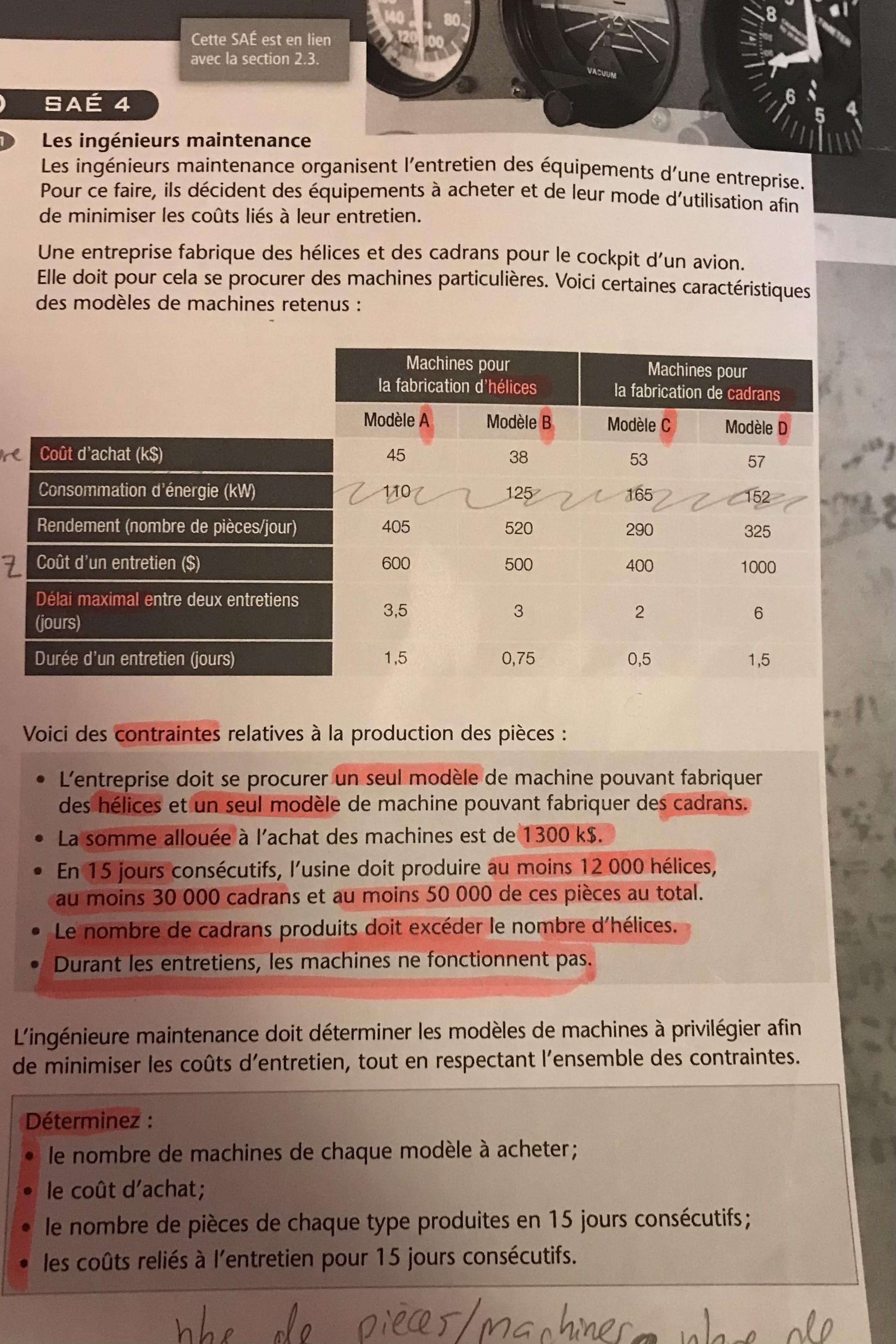Je l'ai complété, mais plusieurs personnes de ma classe m'ont dit qu'il fallait inclure le 15 jours dans ma fonction optimiser. Moi, j'ai juste fait pour un entretien et à la fin, j'ai inclus le 15 jours dans les choses à déterminer. (4eme point à déterminer)