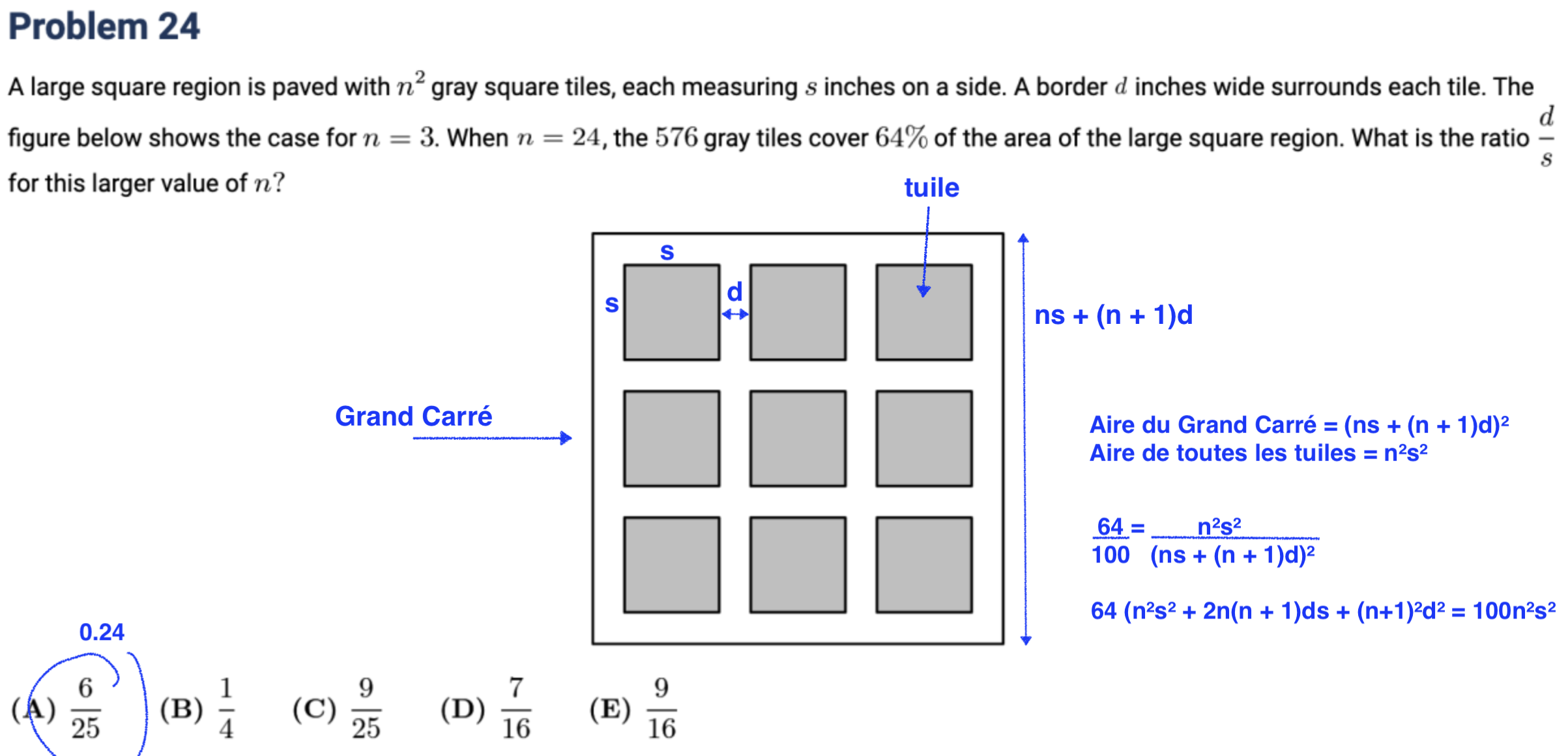 remplace le n par 24 dans l'expression ci-dessous, tu devras diviser par le tout par s², puis chercher les zéros d'un polynôme de degré 2 en x = d/s