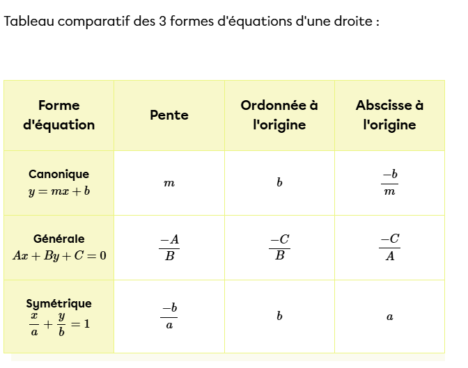 (source : https://www.alloprof.qc.ca/fr/eleves/bv/mathematiques/les-formes-d-equations-d-une-droite-m1320 )