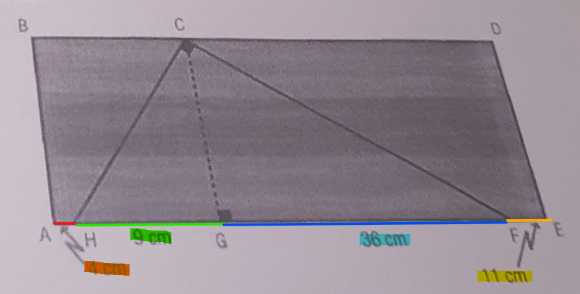 Le 4 cm et le 11cm représentent respectivement les mesures de côtés AH et FE, il ne faut donc pas les soustraire aux côtés HG et GF!