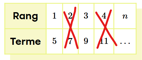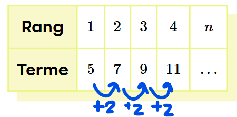 $$régularité=\frac{9-5}{3-1}=\frac{4}{2}=2$$