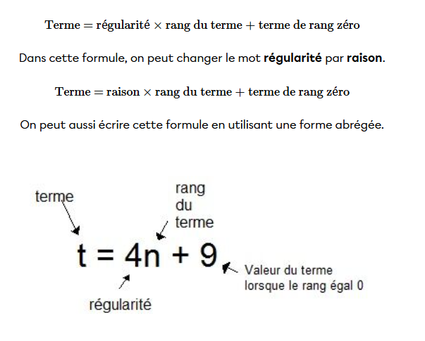 Cette règle permet de trouver un terme dans une suite de nombres ayant une certaine régularité.
