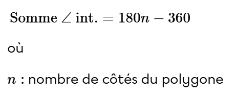 Tu dois commencer par trouver la somme des angles intérieurs du polygone avec cette formule :