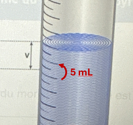 Tu trouves donc le volume en millilitre, puis tu convertis en cm\(^3\).