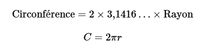 On sait que le rayon de ce cercle est de 15 cm. Avec ce rayon, tu peux trouver la circonférence du cercle :