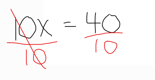 J’ai donc maintenant l’équation suivante : 10x = 40.