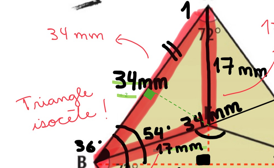 Tu as indiqué que c'est un triangle isocèle avec des côtés de 17 mm et une base de 34 mm.
