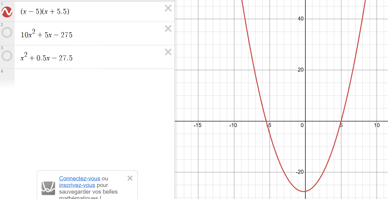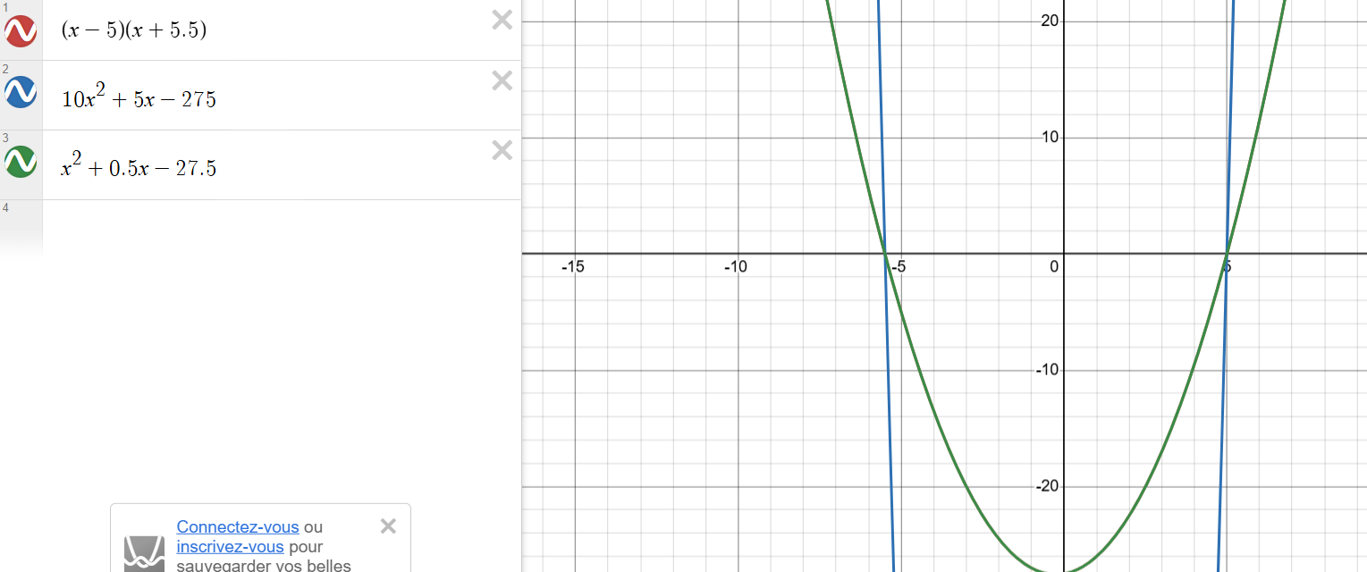En d'autres mots, 10x²+5x-275 n'est pas équivalente à x²+0,5x-27,5.
