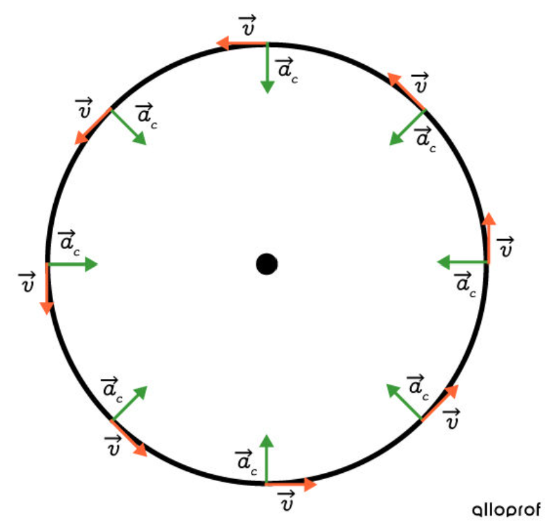 Lorsqu'un objet suit une trajectoire circulaire, la force centripète change constamment sa direction sans affecter sa vitesse. En d'autres termes, cette force ne fait pas accélérer l'objet dans la direction de sa vitesse, mais elle modifie en permanence la direction de son mouvement, l'obligeant ainsi à suivre le cercle plutôt qu'une trajectoire rectiligne. Par exemple, lorsqu'une voiture prend un virage, la force centripète la tire vers l'intérieur du virage, l'empêchant de continuer tout droit.