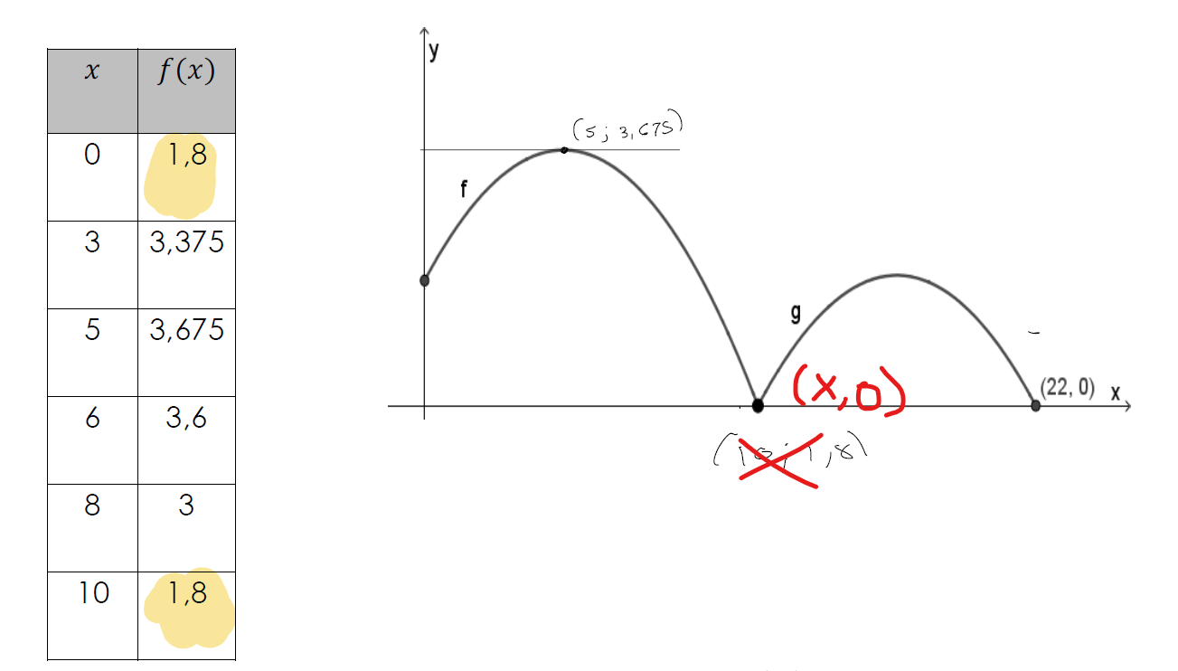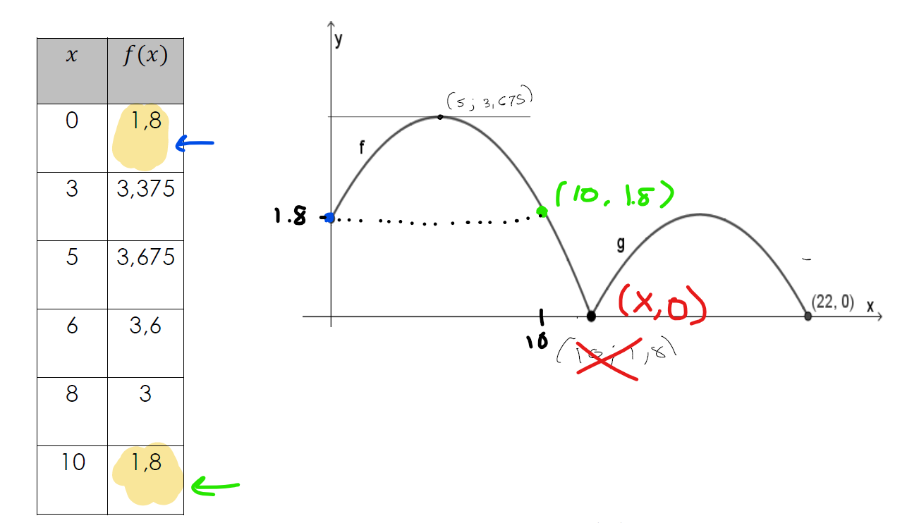 Comme tu l'avais remarqué, le premier point et le dernier point de la table de valeurs ont la même coordonnée en y (c'est ce qui nous permet justement de déduire le paramètre h de la fonction f). Donc, le point (10, 1.8) est ici :