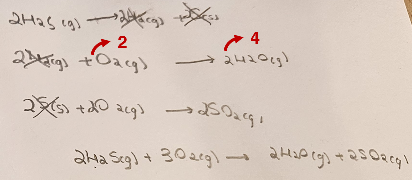 C'est ce que tu fais dans la version 1. Dans la deuxième, il ne s'agit des mêmes réaction, car la stœchiométrie n'est pas respectée.