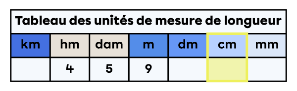 - Je repère la colonne de l’unité de mesure de départ du nombre.