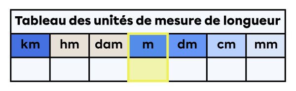 1) Je repère la colonne de l’unité de mesure de départ du nombre.