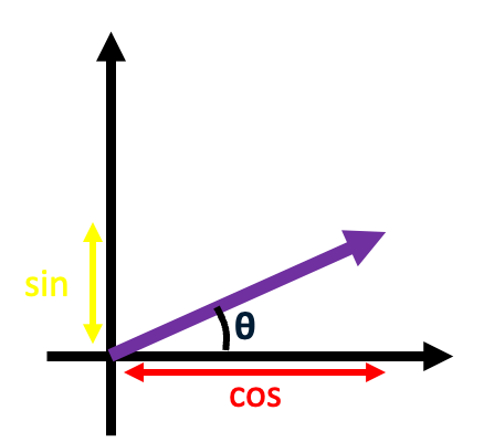 Il n'est pas important de comprendre comment le cercle fonctionne, mais seulement que le cos de l'angle du vecteur est égal à la distance horizontale, tandis que le sin de l'angle du vecteur est égal à la distance verticale.