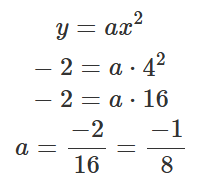 Étant donné que ton sommet passe par l'origine soit la coordonnée (0,0), ce n'est pas une coordonnée que tu peux utiliser dans ta règle y=ax^2 pour déterminer la valeur du paramètre ''a'' . Tu devras rechercher une autre coordonnée. Par exemple, si on choisit la coordonnée (4,-2), on devra résoudre: