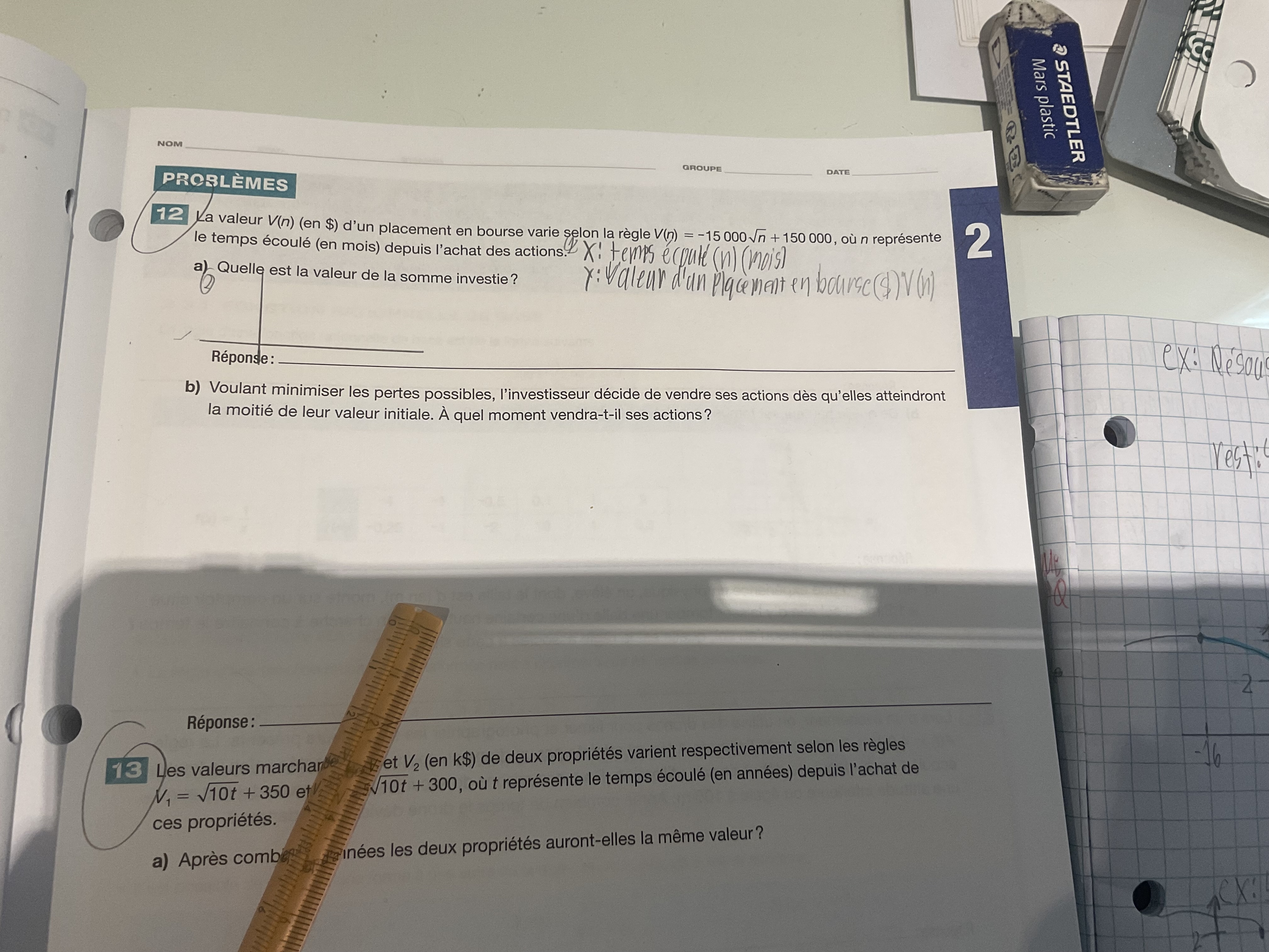 Secondary V • 8mo.Je voulais être sûr de mon calculs avec vous et aussi je ne comprends pas ce qu’il faut mettre à coté de n..
