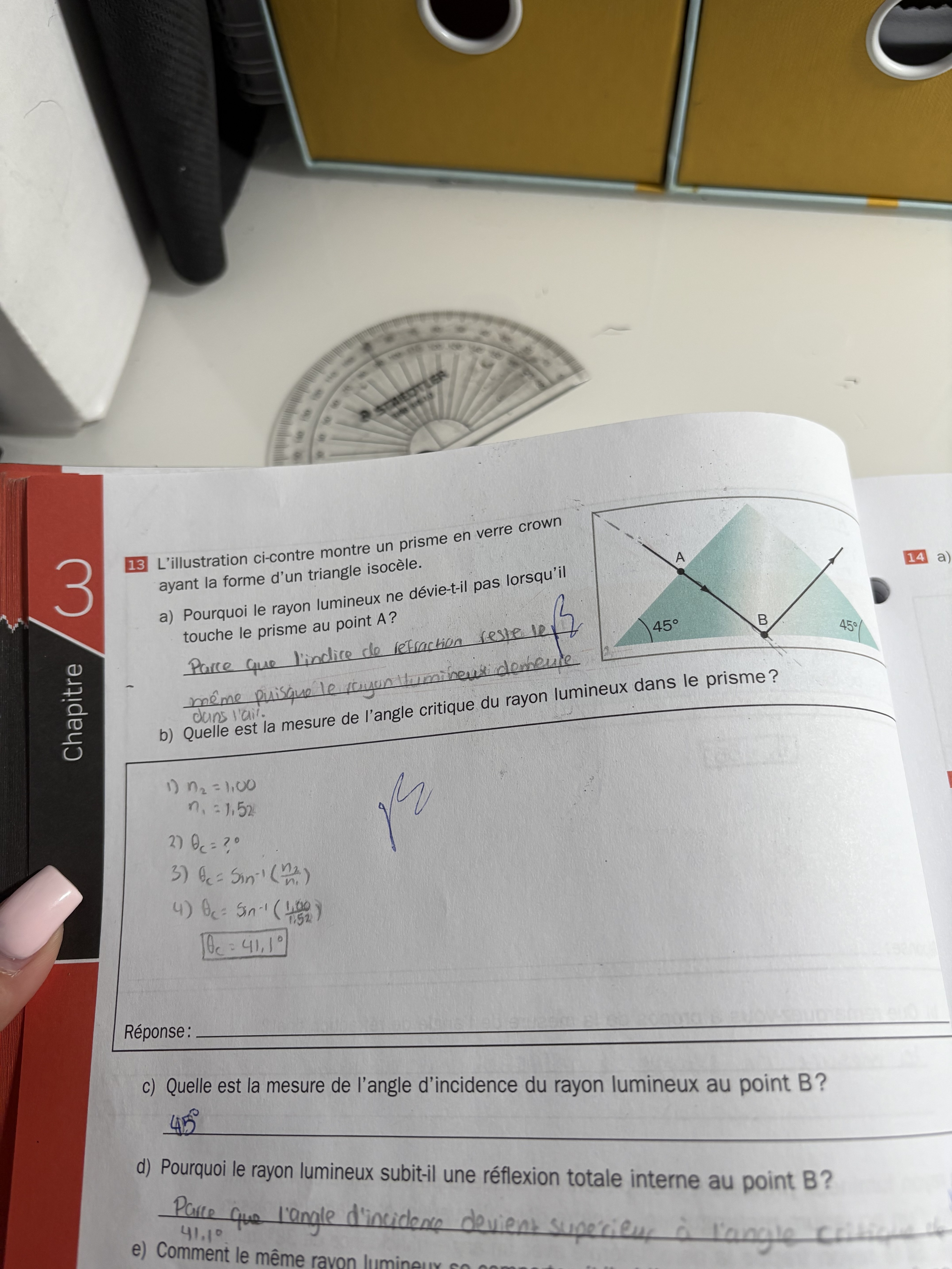 Je ne comprend pas pourquoi l’angle d’incidence est de 45 degrés ici, car logiquement il est confondu avec la normale. En conséquence, il devrait être de 0. Merci en avance et bonne journée.