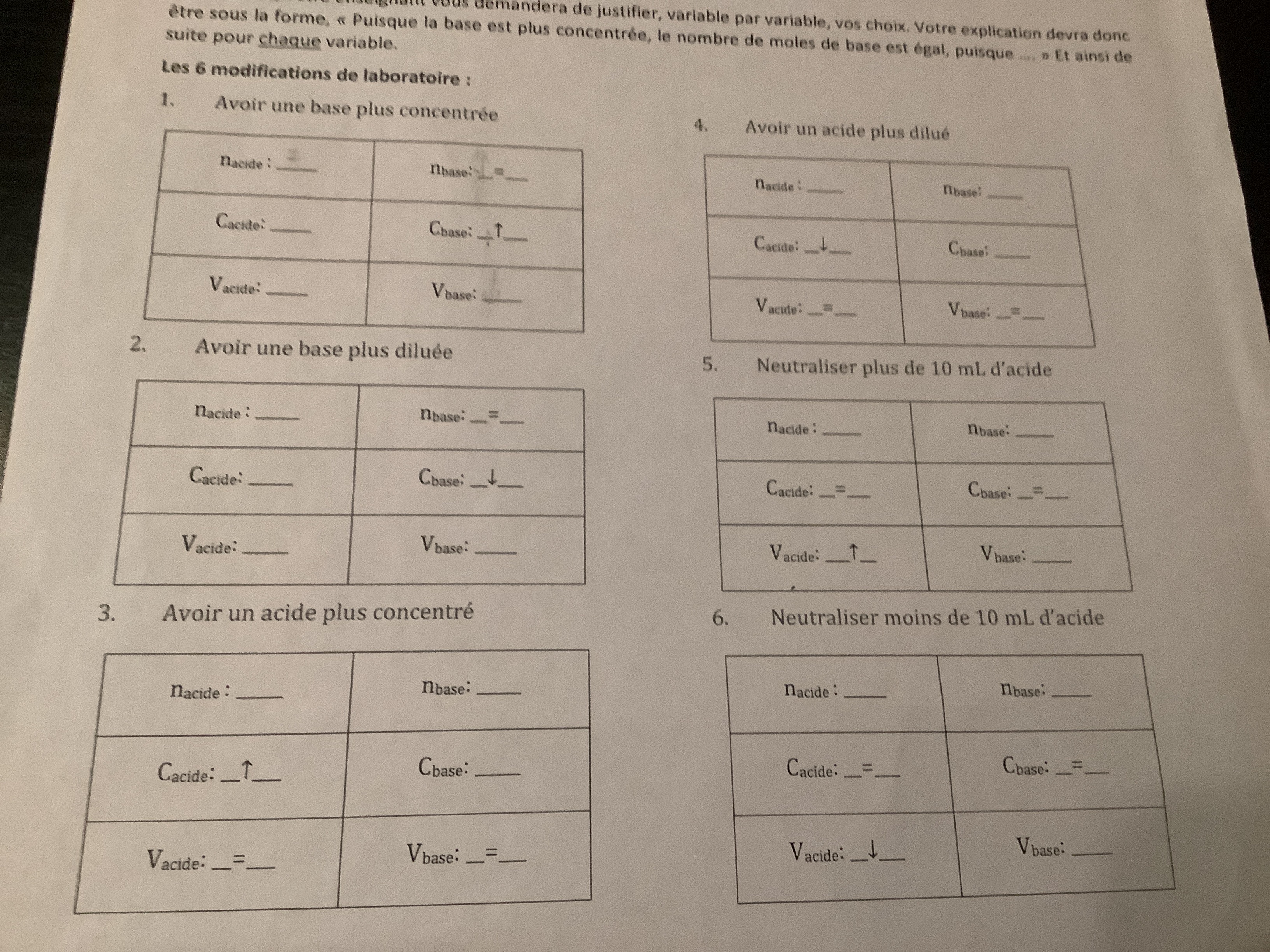 Secondary IV • 2yr.Bonjour c'est urgent, j’aimerais savoir les réponses de ces cas là en laboratoire et leurs raisons . Merci d’avance.