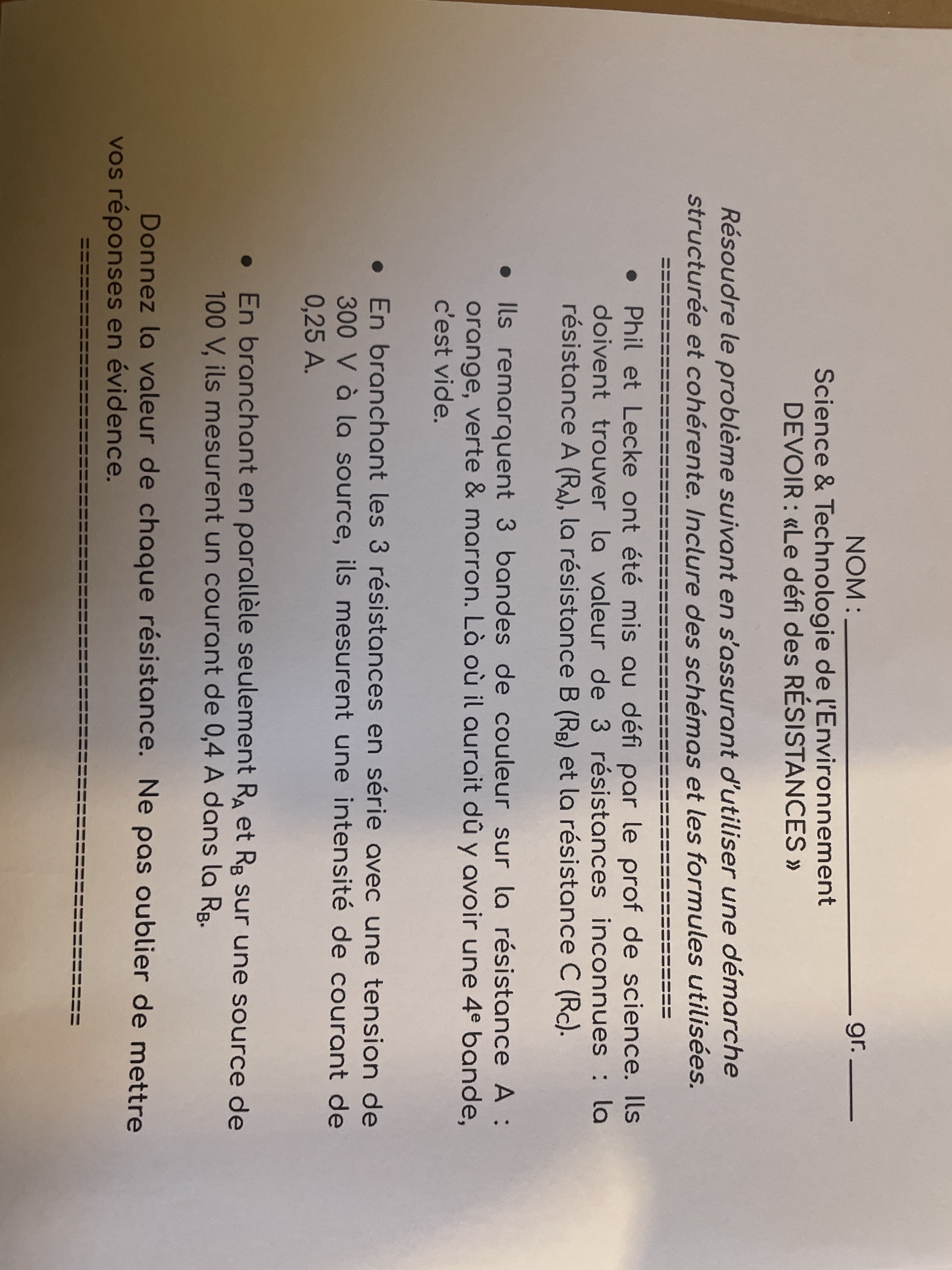 Secondary IV • 2yr.allo, pourriez-vous me dire comment je pourrais commencer mon problème de science, je ne comprends pas quoi faire